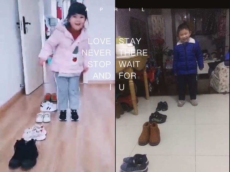 活动方法:家长将鞋子摆成不同的形状,孩子的脚跟着鞋子方向跳跃。
