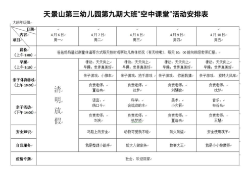 随着疫情的好转,目前高校已经陆续开学了,我们与宝贝们相见的日子也逐渐拉近,对于目前在家我们还是得陆续开展我们的网络教学,清明放假后,我们继续陆续开展每日的活动。