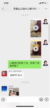 每天早晨9点的时候我们会想小朋友们推送早操的视频,这也是我们班小朋友最喜欢的一个环节,有不少小朋友都进行了打卡。有的小朋友跟着视频进行早操的练习,有的小朋友听着音乐就可以做完一整套早操。
