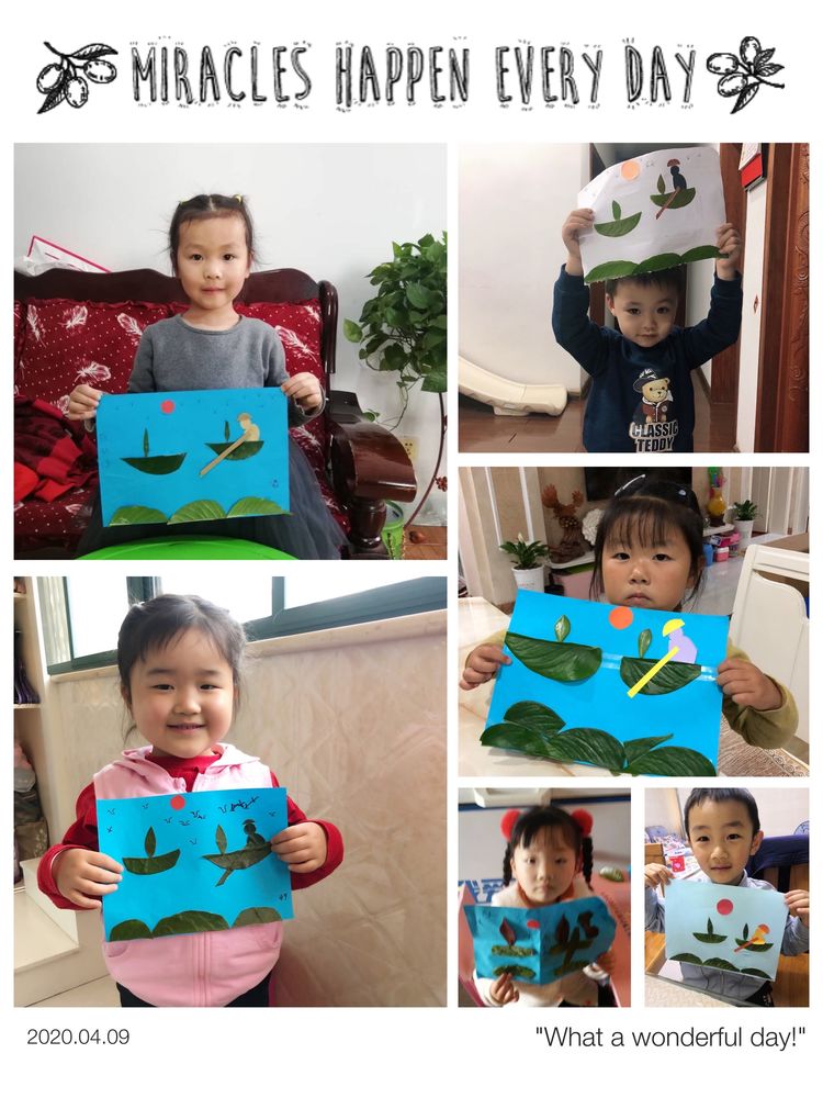 活动目标:利用树叶进行组合粘贴画,培养幼儿的动手操作能力。