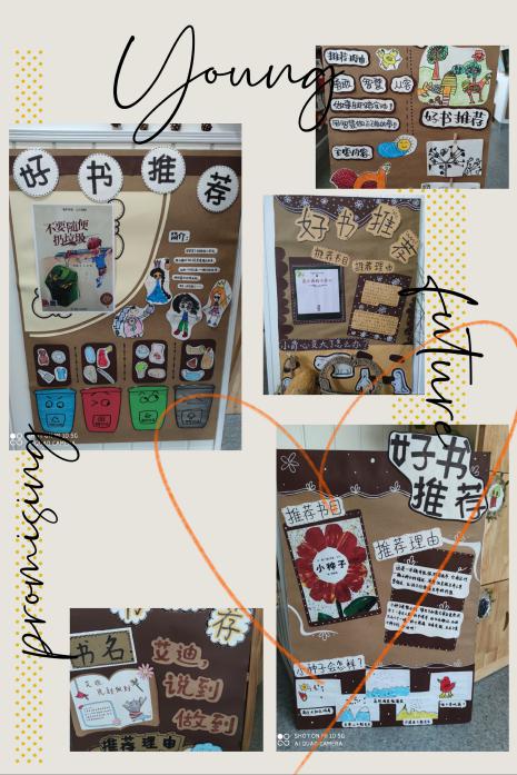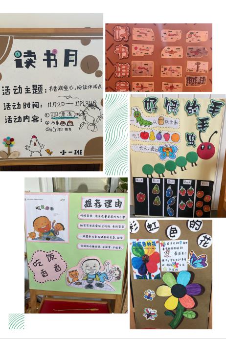 活动前期,各班教师和幼儿共同商量出最喜欢的绘本,共同制作好书推荐展板向全园的幼儿、家长以及教师宣传“读书月”活动。