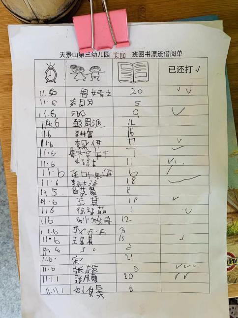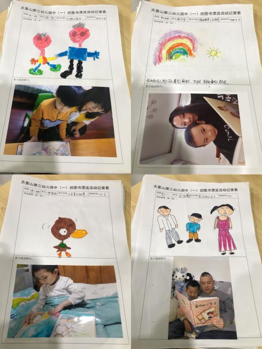 中班的宝贝们开启了图书漂流活动,每个星期的下午,他们在班上的图书区选择一本自己喜欢的绘本带回家并独立的在图书借阅表上用自己的小记号进行登记,利用周末时间和爸爸妈妈一起阅读绘本,并用照片和幼儿绘画的方式记录下来,回班之后分享给自己的好朋友听。通过图书漂流活动,可以培养幼儿对书籍、绘本阅读的兴趣,能有良好的阅读习惯。