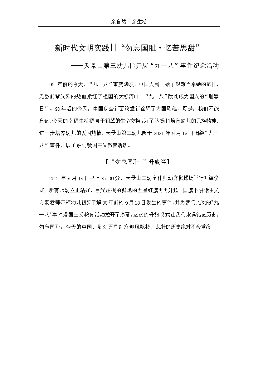 下一篇:铭记历史,守护和平——天景山第三幼儿园公祭日活动报道