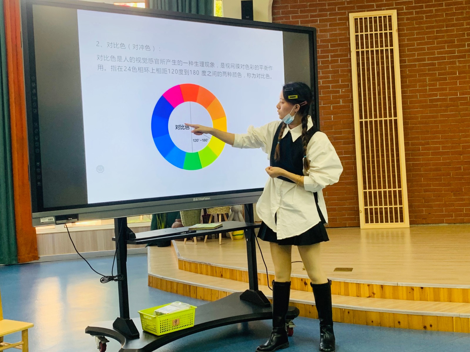 首先,是刘慧敏老师给大家带来了关于《感知色彩》的讲座,色彩分为三原色:红、黄、蓝。每两种原色相同比例的融合产生间色,三种颜色的融合会产生复色,也就是黑色。颜色里还分同类色、对比色,色彩是对人的视觉感官所产生的的一种生理现象,是视网膜对色彩的平衡。通过学习讲座可以更好的帮助老师在环境创作以及美术美感方面进行提升。
