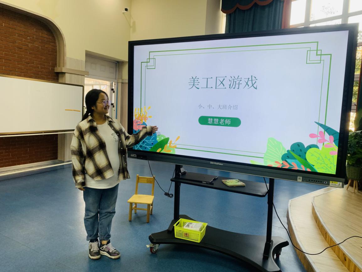 最后,由王慧老师带来关于各年龄段的美工区游戏分享,小班推荐了手工作品《树》、中班推荐了《格子画》教师可以适当的根据班级孩子的程度增加难度、大班推荐水墨画《八爪鱼》是利用棉签和波浪线画出的八爪鱼,生动形象。