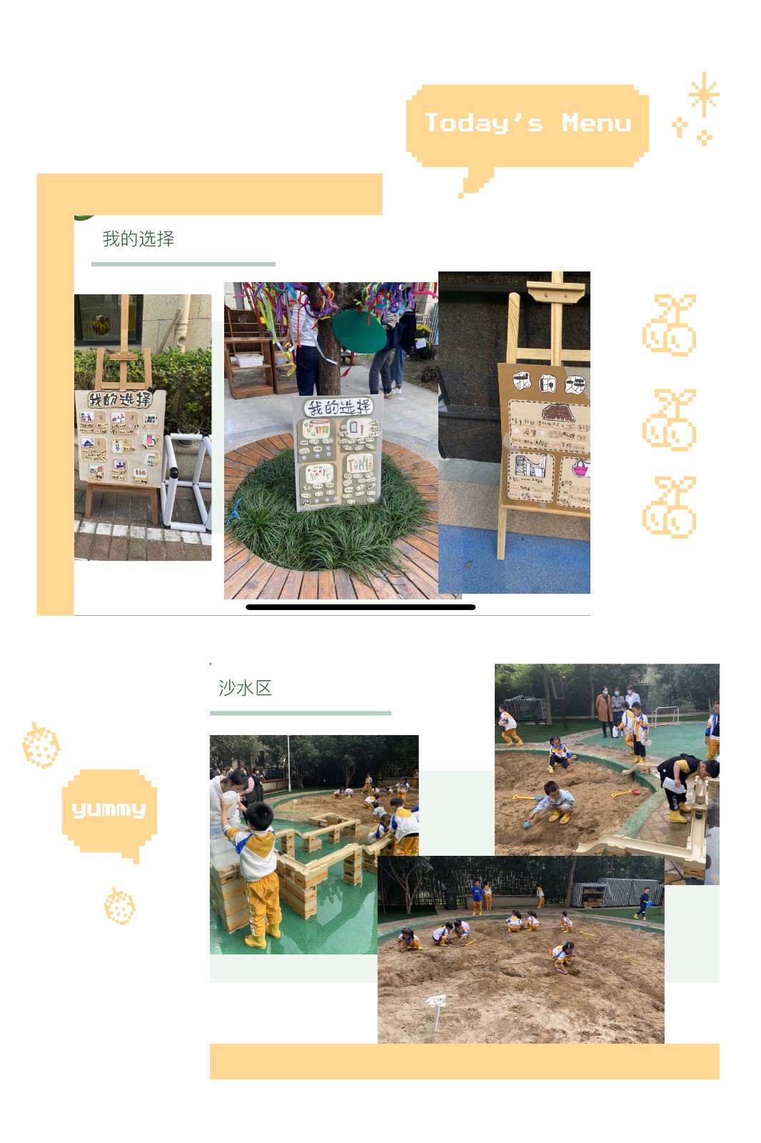 从“我的选择”展板中,我们可以看出这些户外游戏都是幼儿自发自主的游戏,因此幼儿的兴趣点较高,每个幼儿都有事可做。