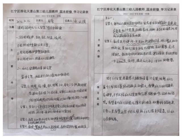 本次培训活动由课程游戏化项目建设负责人周周老师主持。过程中,周周老师向在座的五名年轻教师细细解读了每一个支架的内容,且结合生活中的典型案例,分层次、有步骤、多渠道地让教师们理解了六个支架的主要内容和实施要求,引导大家在游戏中重新认识儿童,用游戏精神塑造先进的教育观和儿童观。如在支架一中:观察1名儿童,每天观察3次,每次3分钟,自己用随笔方式记录。老师们结合自己的观察记录,对照标准进行解读,理解观察对幼儿发展的作用,鼓励教师们及时在游戏中观察、关注幼儿。在最后的分享环节中,大家一致认为:要多观察、细思考,做一个有心、用心、细心的教师。孩子在先,教师在后,尊重幼儿学习与发展的基本规律和特点,为幼儿创设自主游戏的空间与时间,满足幼儿自主游戏的愿望,激发幼儿自主游戏的兴趣,让幼儿快乐度过每一天,促进幼儿身心全面和谐发展。