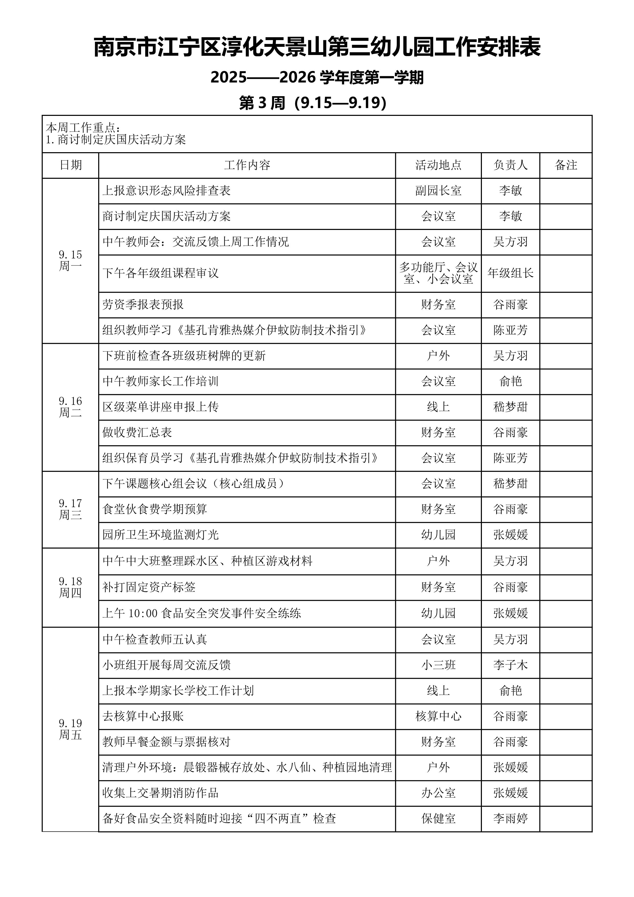 下一篇:天景山第三幼儿园周工作安排表(第四周9.22-9.26)
