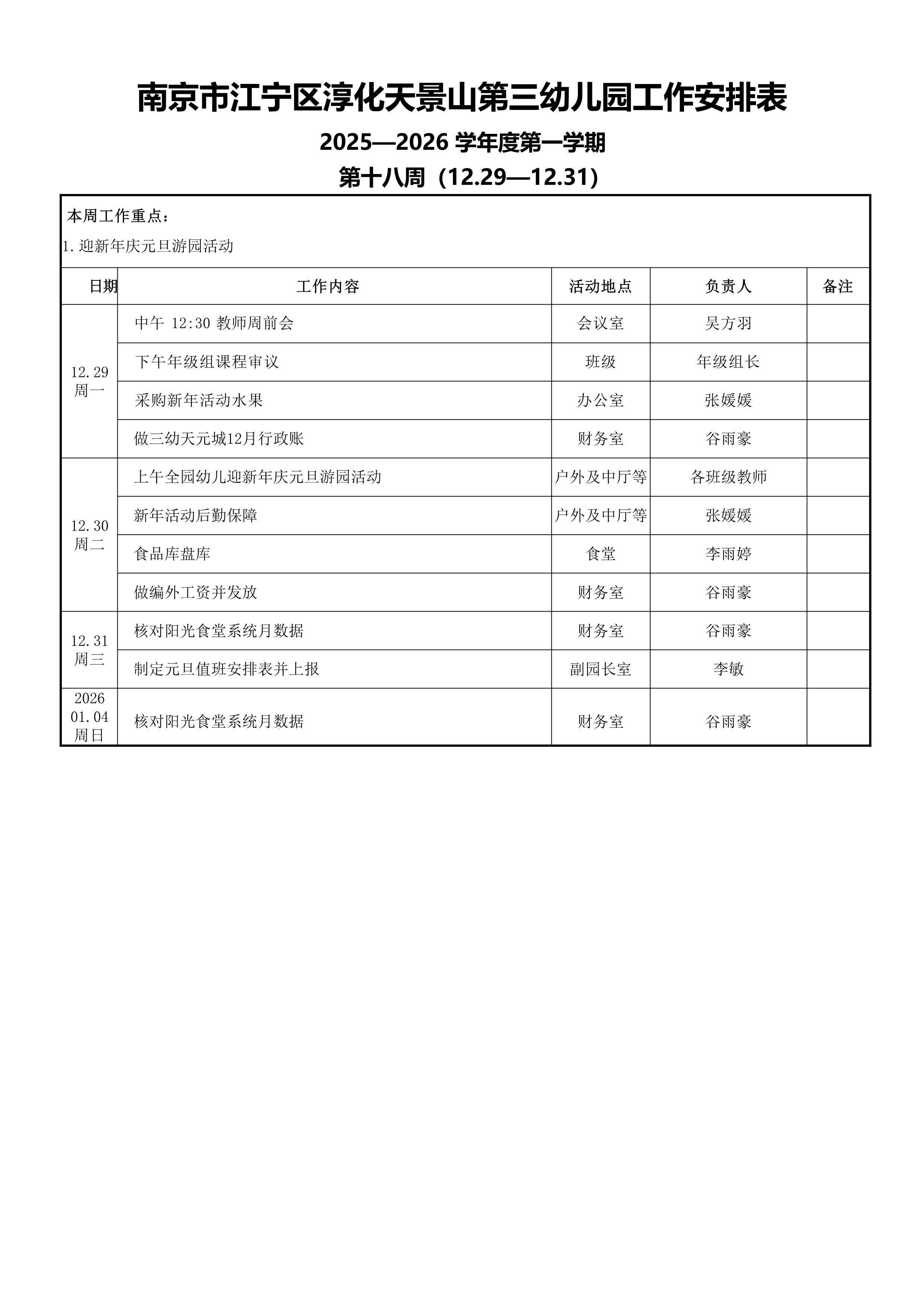 下一篇:天景山第三幼儿园周工作安排表(第十九周01.05—01.09)
