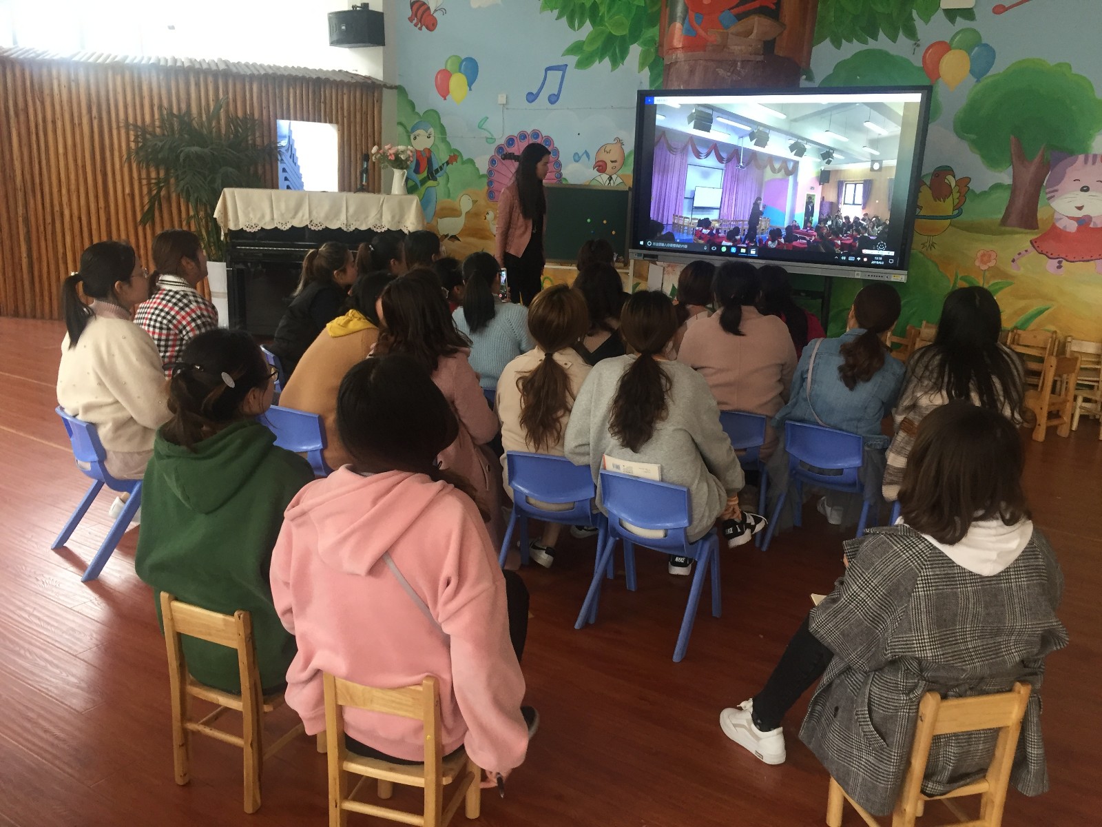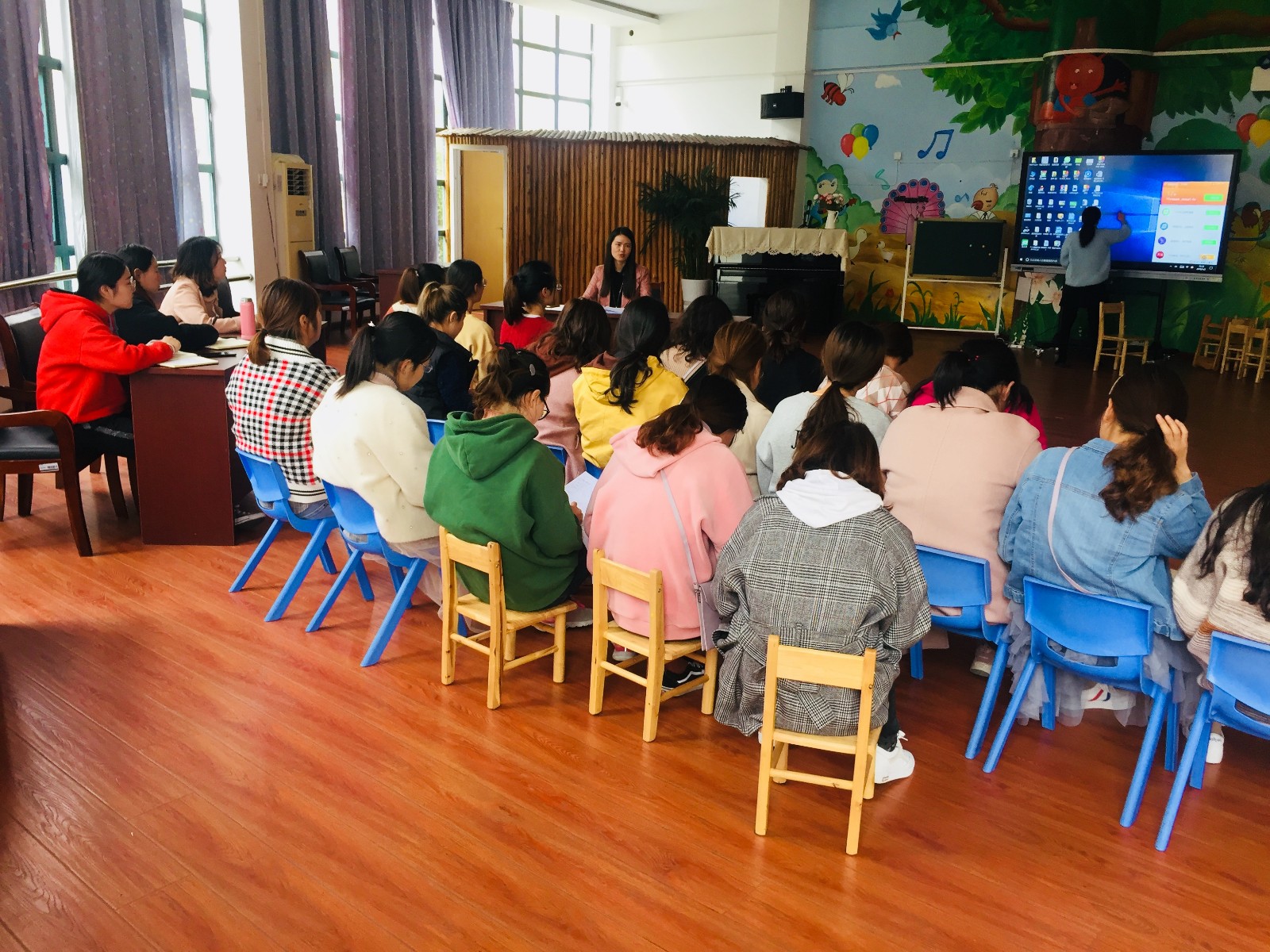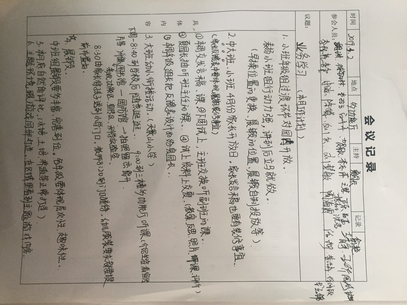 4月2日中午,夏园长在多功能厅带领全园教师进行业务学习,会议议题主要是对3月的工作总结及对4月工作计划进行系统的安排。
