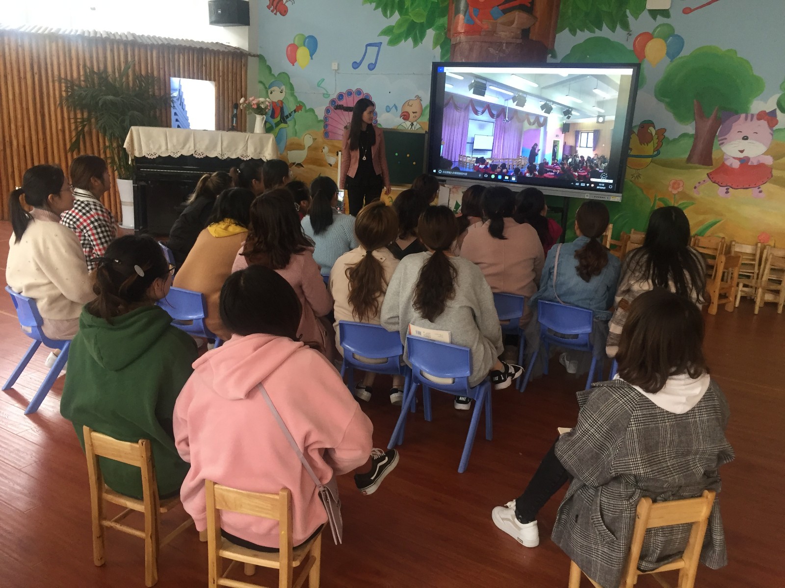 最后,夏园长对教学活动进行了系统的评价,鼓励老师们敢于、勇于尝试自己的薄弱领域,如:打击乐、歌唱、律动等。同时夏园长对打击乐活动进行了详细的示范与剖析,一步一步的教老师如何进行打击乐活动,这也让老师们对打击乐活动有了进一步的认识,在活动流程上更加清晰、明朗。