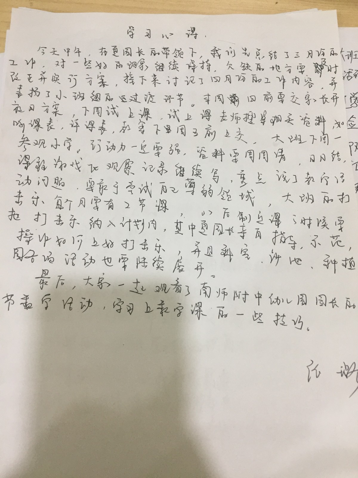 其次,会议中强调全园本月举行家长开放活动,在家长的反馈表中要体现暑期装修事宜,同时家长发言稿、反馈表中也要体现暑期装修事宜,让家长明确了解这件事情。针对家长开放日,夏园长还要求各位教师各尽其职,家长发言稿、教案等在本周做好准备,下周全面进入试上阶段,主班可交换听副班组长的教学活动,最后再由夏园长抽听班组长的教学活动。试上活动结束后,及时上交资料。接着,夏园长重点介绍了下周大班幼小衔接活动。本次活动内容丰富多彩,从进学校到离校都有了精心的安排,同时夏园长也对孩子的接送、服装等做了部署,争取活动取得圆满成功。