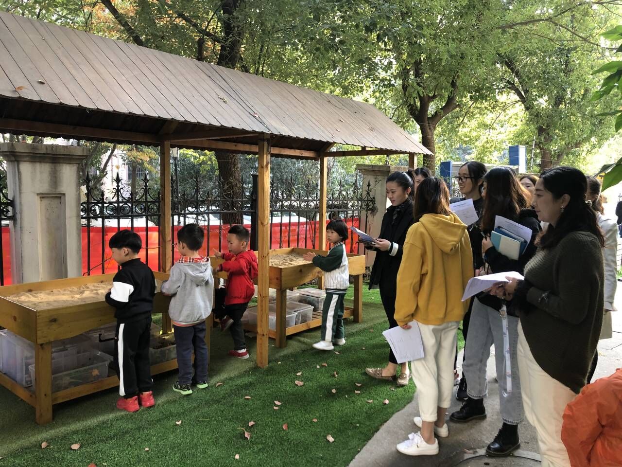 在这个阳光明媚的日子里,我们来到了天元城幼儿园,孩子们的户外游戏真的很棒,有的在沙池里面挖一条长长的通道,然后把pvc管子放在通道里,他们想把水通过管子运输到对面的娃娃家去。还有水池区,孩子们用各种玩水工具,探索水流的奥秘。涂鸦区孩子们花了一朵大大的菊花,真是太应景了吧。还有的小朋友在菜地里戴着草帽干活呢!