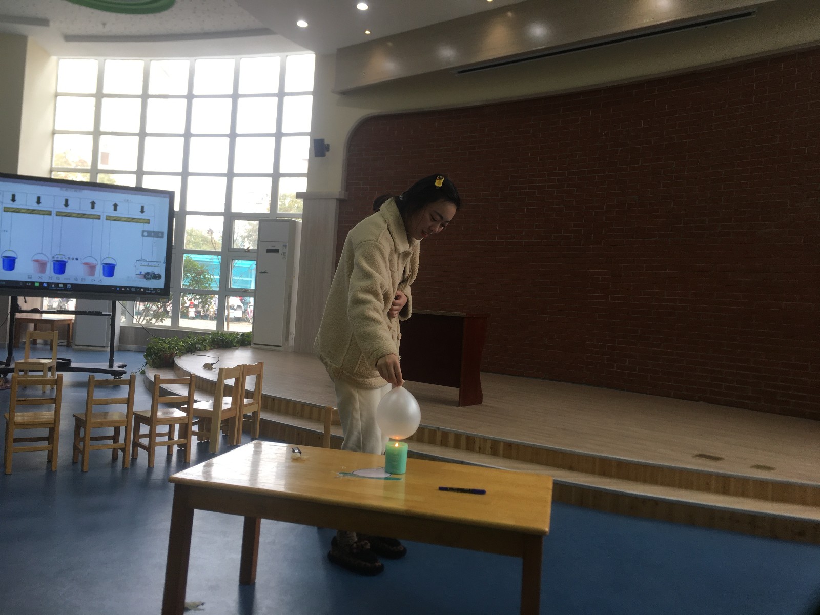 最后,由文文老师为大家带来了科学小游戏:防火气球。在气球中装上水后,放在蜡烛上气球是不会爆炸的,因为水会把火的热能吸收,不会让橡胶破裂。由苗苗老师为大家带来了数学小游戏:开心消消乐。在杯子的底部画上数量不同的点子,找到相同数量的即被消除掉了。
