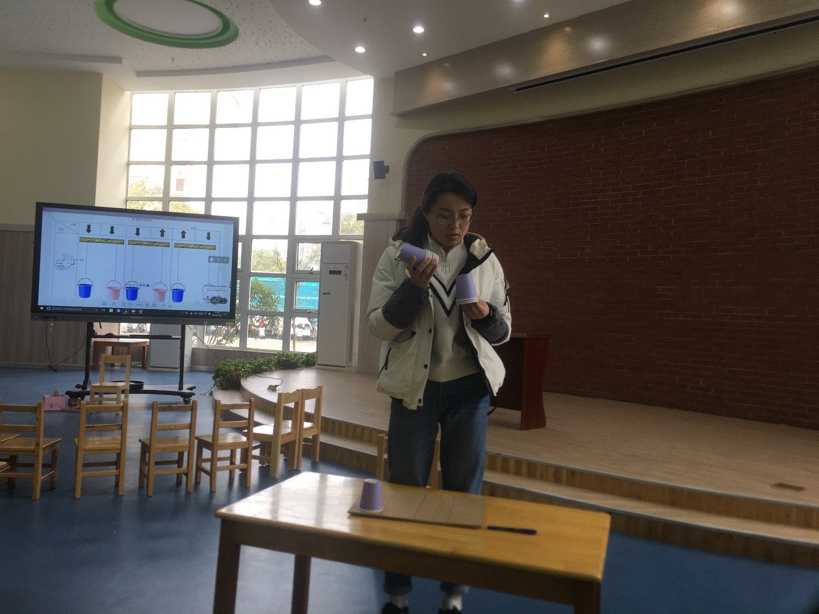 接下来,由甜甜老师为我们带来了一节小班的科学活动《暖暖的手套》。让幼儿通过看一看、摸一摸、再戴一戴的方法了解到手套有许多不同的颜色、种类、大小等;知道冬天戴手套可以抵御寒冷,给我们带来温暖。第二节集体活动是娇娇老师的大班科学活动《有趣的扁担》。在探索操作中让幼儿知道扁担的平衡点是会根据两边物体的重量而发生改变的;让幼儿在合作中探索扁担的平衡点并知道扁担在生活中的便捷作用。下面是两位执教老师对自己的集体活动进行了讲解在简短的讨论之后,三幼的晓晓老师和天元城的么么老师对两节集体活动展开了评价。